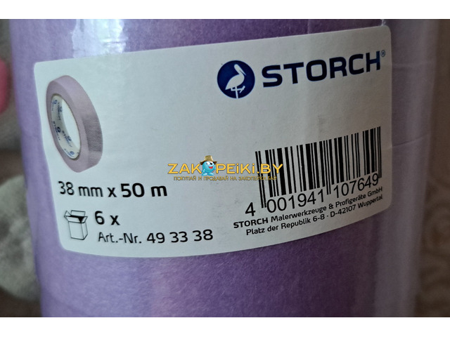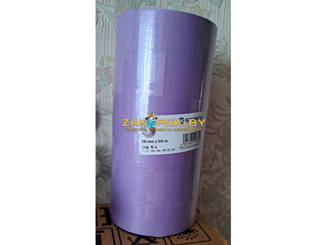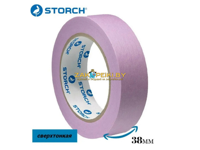 Лента малярная бумажная сверхтонкая 38мм-50м, не деформируется, не оставляет следов клея, прочная на разрыв, термостойкость до 90С, привезена из Литвы. Лента малярная бумажная сверхтонкая фиолетовая, 50м STORCH - экстратонкая (0,09 мм) рисовая бумага. Молярный скотч бумажный идеален для водорастворимых материалов. Малярная лента для использования на гладких, чувствительных/проблемных поверхностях, таких как пластик, алюминий, цинк и т.д. Средняя адгезия, очень высокая влагостойкость. Высококачественный акрилатный клей. UV устойчивость до 4 недель.