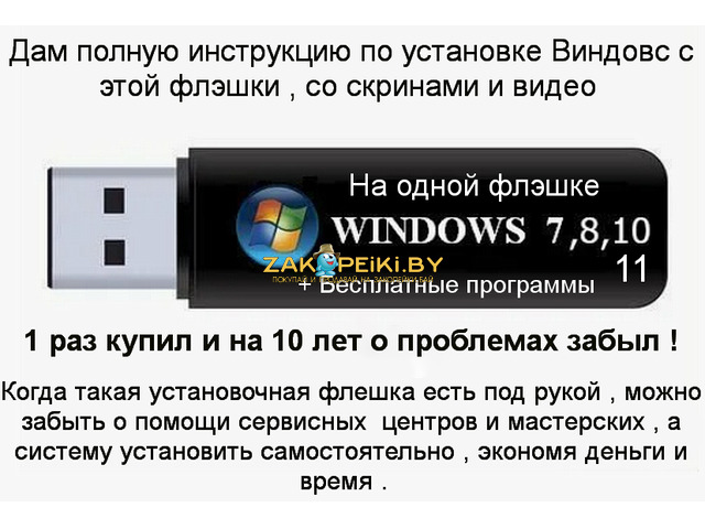 Продам загрузочную мульти флешку для установки Виндовс 7,8,10,11 они все на одной флешке , не урезанные с сайта Майкрософт , скачанные до санкций . Плюс на флешке есть папка с бесплатными популярными программами . Программа 3DP, для установки драйверов сетевой карты , что бы работал интернет , автоматически определяет материнскую плату и устанавливает нужные драйвера без подключения к интернету ( офлайн ) . Для установки всех остальных драйверов , есть программа Драйвер бостер , она автоматически с интернета установит нужные драйвера на любой ПК , или Ноутбук . Виндовс 7 32-64 , 8,1-64 , 10 32-64 LTSC и 11-64 , для слабых ПК уже активированы , а на 10 64 Pro. 22Н2 и 11-64 Pro 25Н2 , активаторы в папке ПРОГРАММЫ на флешке . Дам подробную инструкцию по установке и активации Виндовс 10 и 11 после приобретения . Вышлю Бел . почтой наложенным платежом , только после согласования по телефону . Без торга ! Находится в гп. Руденск .